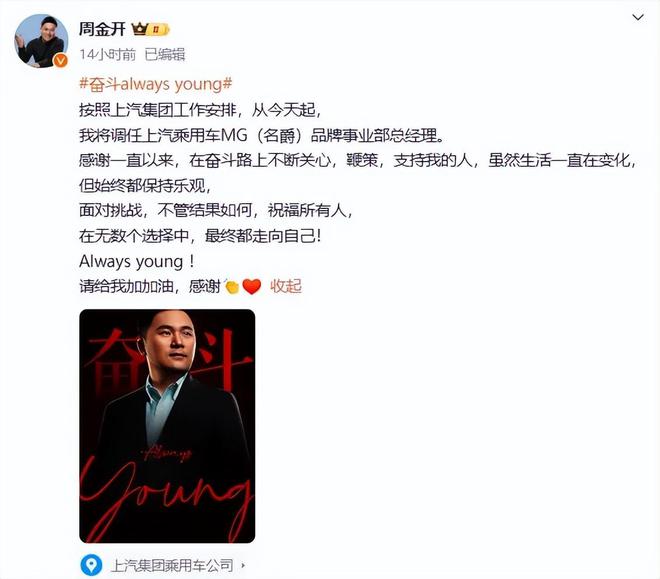 【上汽集团高管新变动★★★:周钘离开五菱,调任上汽名爵品牌总经理】上汽通用五菱原品牌与传播总经理周钘将担任上汽名爵品牌事业部总经理★,统管品牌★、营销、渠道等事务★。12月9日上午★★★,这一消息在内部被宣布。(晚点Auto)